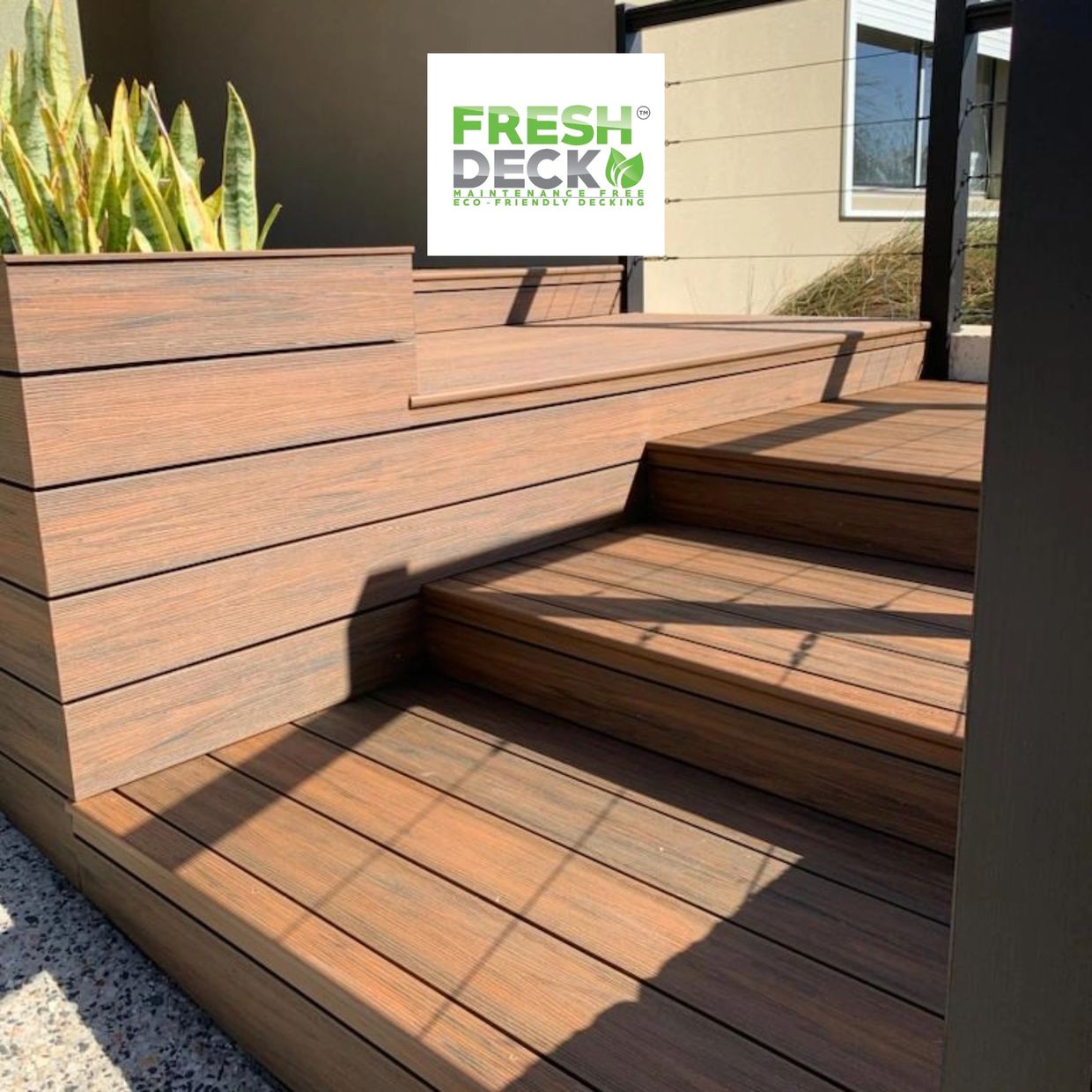 Maintenance Free Eco-Friendly Decking FreshDeck™ Is Engineered With Super Hard Shell. You Will Have Superior Fade, Stain, Scratch And Mould Resistance. Comes In Rich Colours. Natural Looking 3D Anti Slip Wood Grain. Solid (not hollow) Composite Decking. 25 Years Manufacturers Warranty.